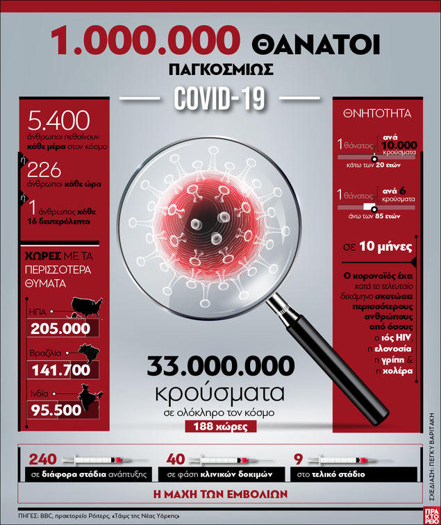 ΥΓΕΙΑ54321 0 (0 votes)The estimated reading time is less than a minute COVID-19 - Ξεπέρασαν το 1.000.000 οι θάνατοι παγκοσμίως Panagiotis Dontas October 1, 2020 at 5:50 am423 Views0 Ένας άνθρωπος πεθαίνει κάθε 16 δευτερόλεπτα από τον κορονοϊό, σύμφωνα με τα στοιχεία της έρευνας που αποτυπώνονται στο γράφημα